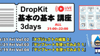 DropKit 10月31日_DropKit 基本の基本講座 3Days 夏の終わりに大好評だったあの講座の続編です。 今回は3回シリーズで、まとめて購入がお得。 講師もずいぶんやる気の模様です。 申し込みは下の画像をクリック! 2025.10.21 DropKitイベント