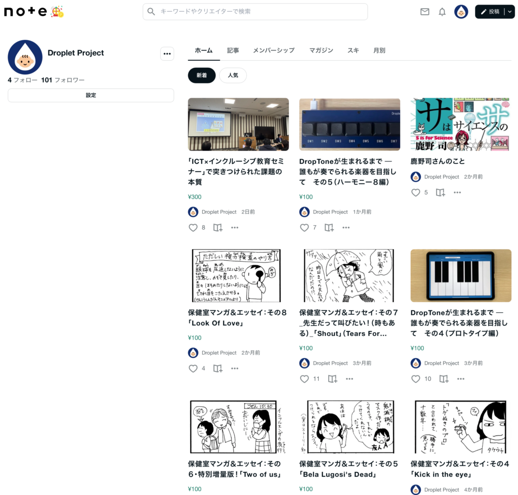 フォロワーも100を超えたので(間違いなく鈴木先生効果)、改めてもしよければドロップレット・プロジェクトのnoteもチラリと覗いてやってください。時々無料記事もあります。